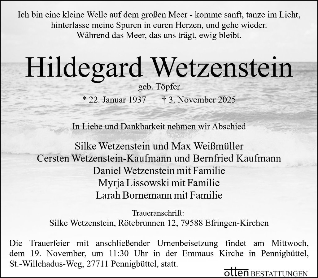gestorben am 3. November 2025 in Osterholz-Scharmbeck