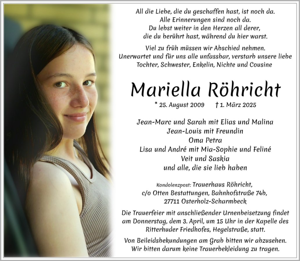 Meine Tochter, meine zweite Hälfte, mein weibliches ich und heilige Mariella der großen Familie Röhricht,